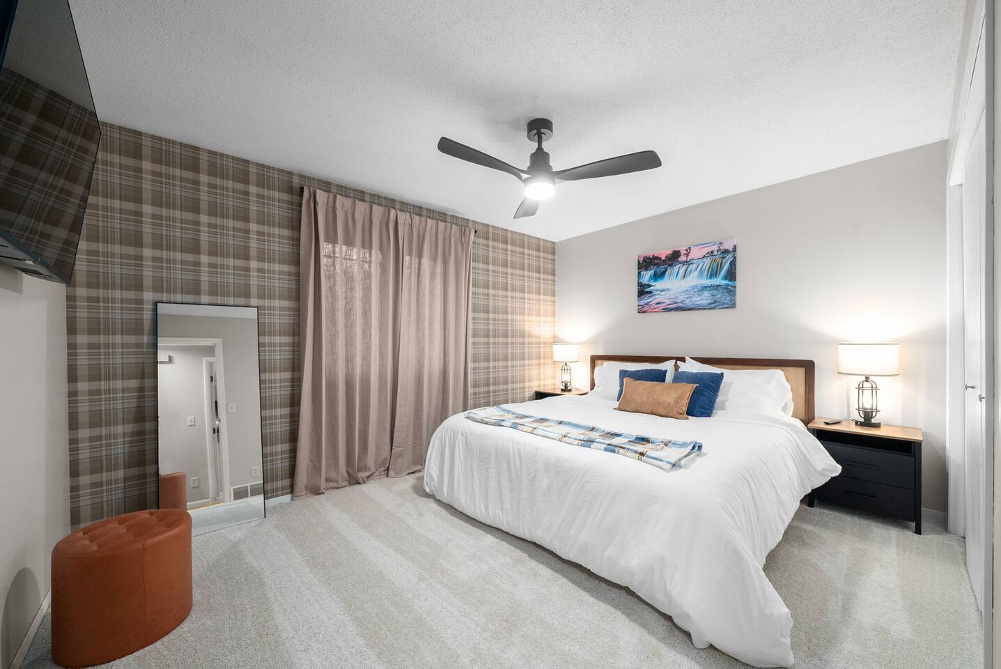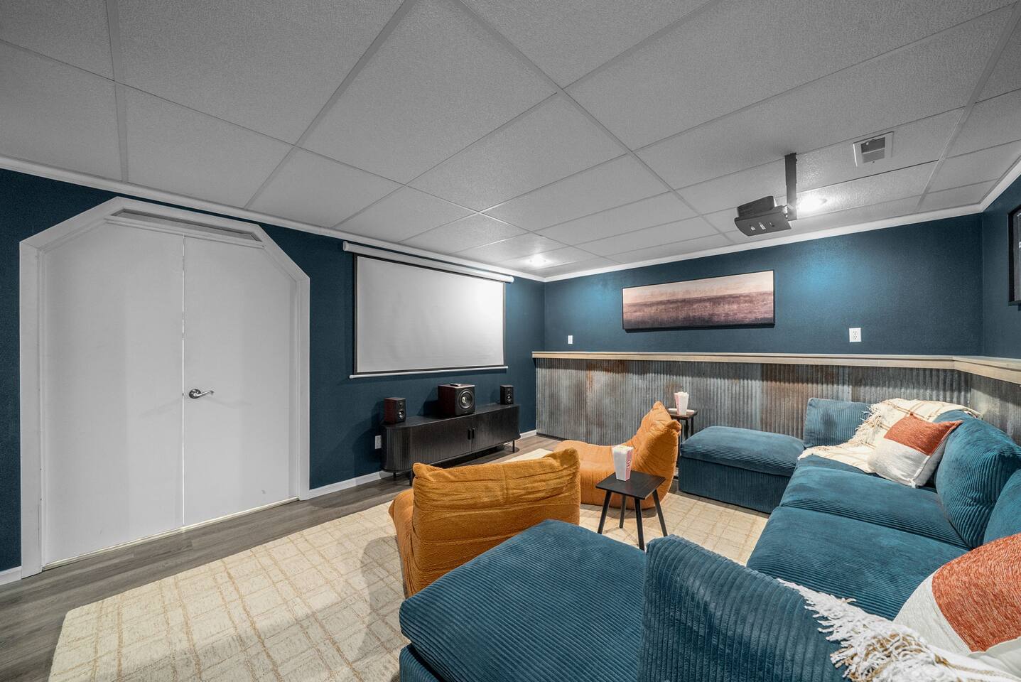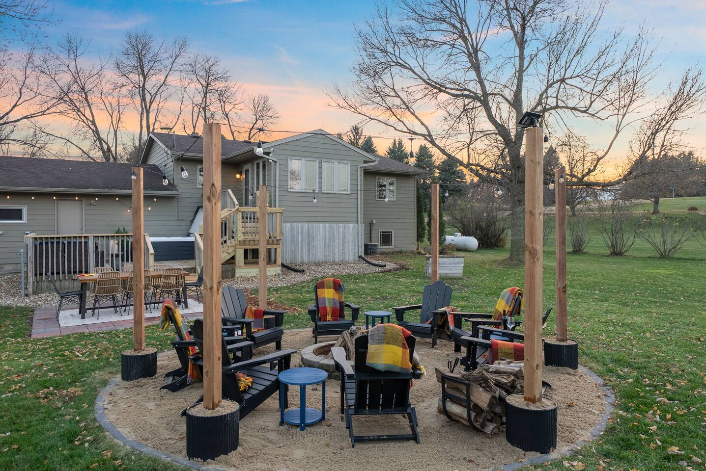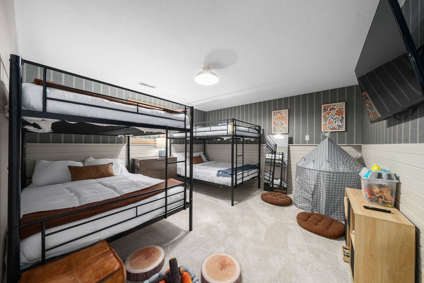 Nestled in a peaceful neighborhood just minutes from I-90 and I-29, the home offers both tranquility and convenience. Whether you’re visiting for a sporting event, a family vacation, or a weekend with friends, Falls Edge Retreat has everything you need for a comfortable and memorable stay. The space This spacious two-story home sits on a one-acre lot in a quiet neighborhood right off Marion Road. Thoughtfully designed for comfort and fun, it’s perfect for guests of all ages. Bedrooms -Bedroom 1: King bed · Smart TV · Closet -Bedroom 2: King bed · Smart TV · Closet -Bedroom 3: Queen bed · Smart TV · Workstation desk -Bedroom 4: Two full-size bunk beds · Smart TV · Kids’ play area & games Kitchen & Dining -Fully stocked kitchen with modern appliances and a gas stove -Coffee bar with Keurig and drip coffee maker -Kitchen table seats 6 -Separate dining room seats 8 Living Spaces -Living Room: Cozy couch, two chairs, Smart TV, and a selection of books -Movie Room: Couch, two lounge chairs, Bluetooth projector with screen and sound system, and a popcorn machine -Game Room: Golf simulator, shuffleboard, air hockey and ping pong table, skee-ball, counter seating, and bar stools Gym (unattached garage) -Two-person sauna -Treadmill, exercise bike, power rack, free weights -Yoga balls and mats Outdoor Oasis -Relaxing hot tub -Fire pit with string lights -All-weather dining table and chairs -Extra lounge seating -Gas grill and s’mores sticks -Outdoor games (stored in red shed) - disc golf, bean bag toss, portable volleyball net, connect 4, jenga, sandbox and toys, playset and swings for kids Guest access -Guests have full access to the entire home except the attic and storage under the stairs. -Convenient keypad entry for both the front door and the unattached garage ensures you’ll never be locked out. Extra Touches -Beautiful mural in the game room painted by our favorite local artist. -Custom guest book inside featuring local restaurants and activities, handpicked for an authentic Sioux Falls experience!